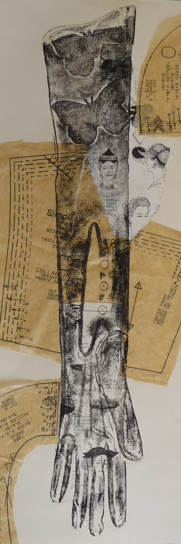 Sewing Pattern Hat Glove Collagraph
